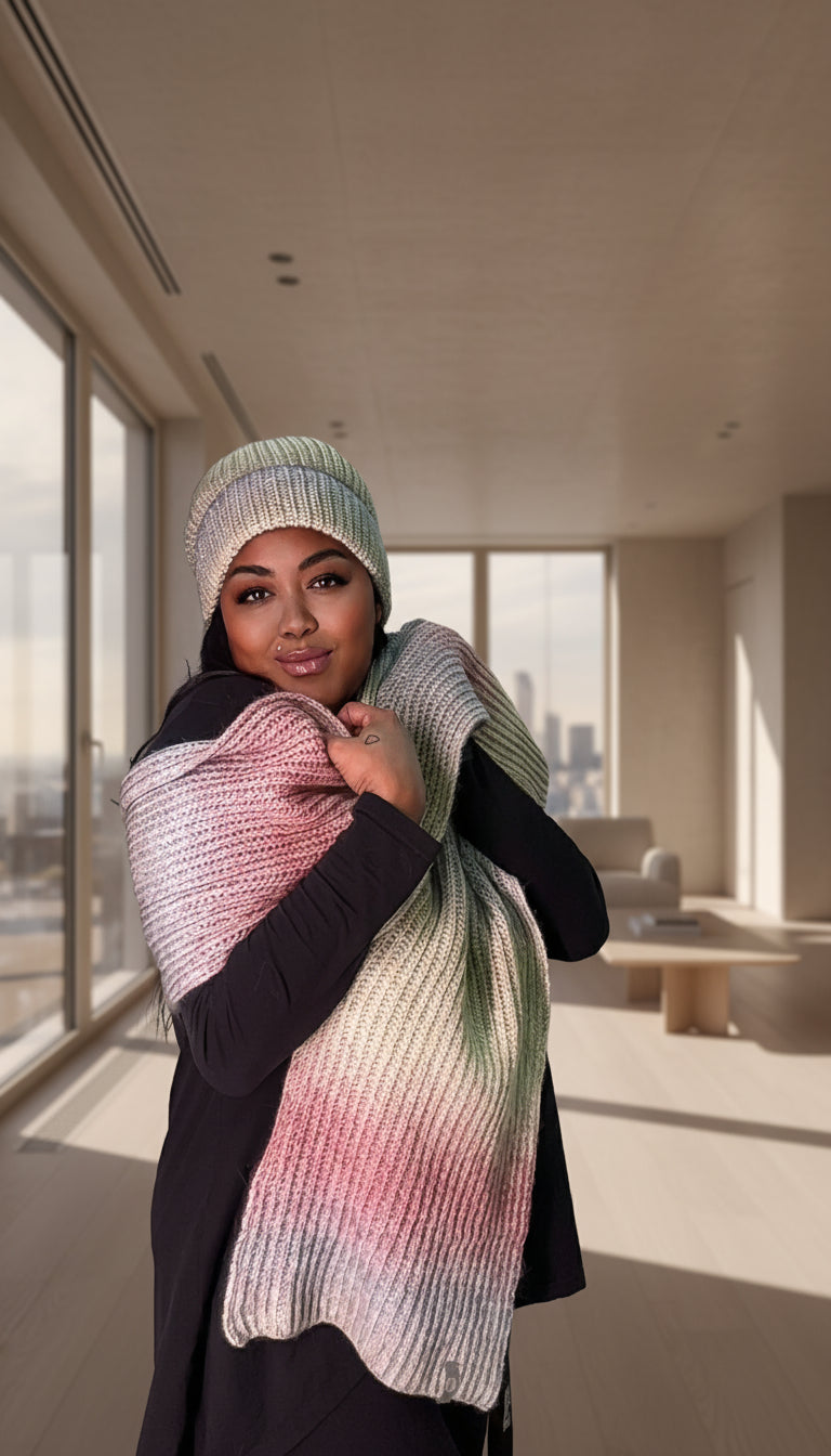 Ein langer, multicolourer Schal der Boutique FABULOSA Fair Fashion, gefertigt aus 83 % Bio-Baumwolle und 17 % Alpaka. Er ist fair gehandelt und verbindet Wärme, Weichheit und nachhaltige Eleganz.